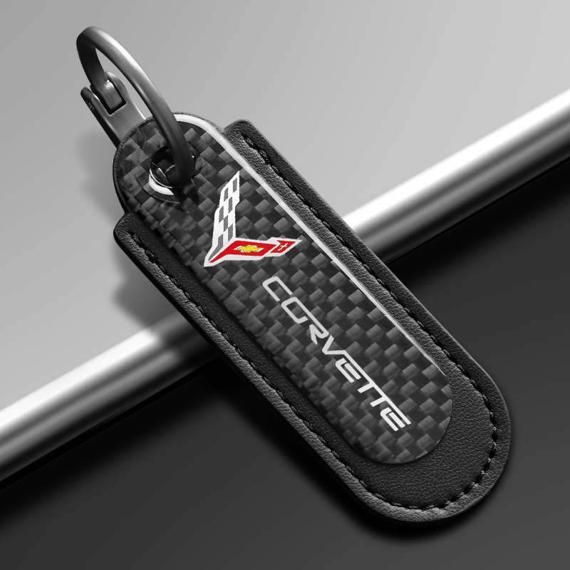 - Chevrolet Corvette C8 Real Carbon Fiber Black Leather Keychain