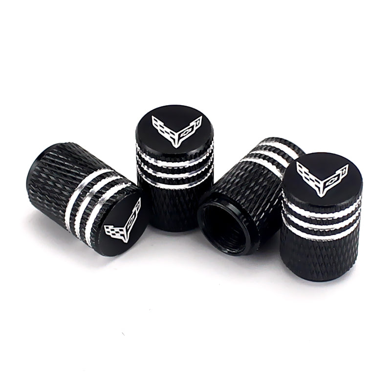 - Corvette C8 Black Laser Engraved Tire Valve Stem Caps