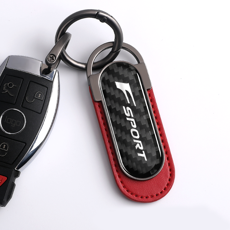 F Sport Carbon Fiber Red Leather Metal Keychain