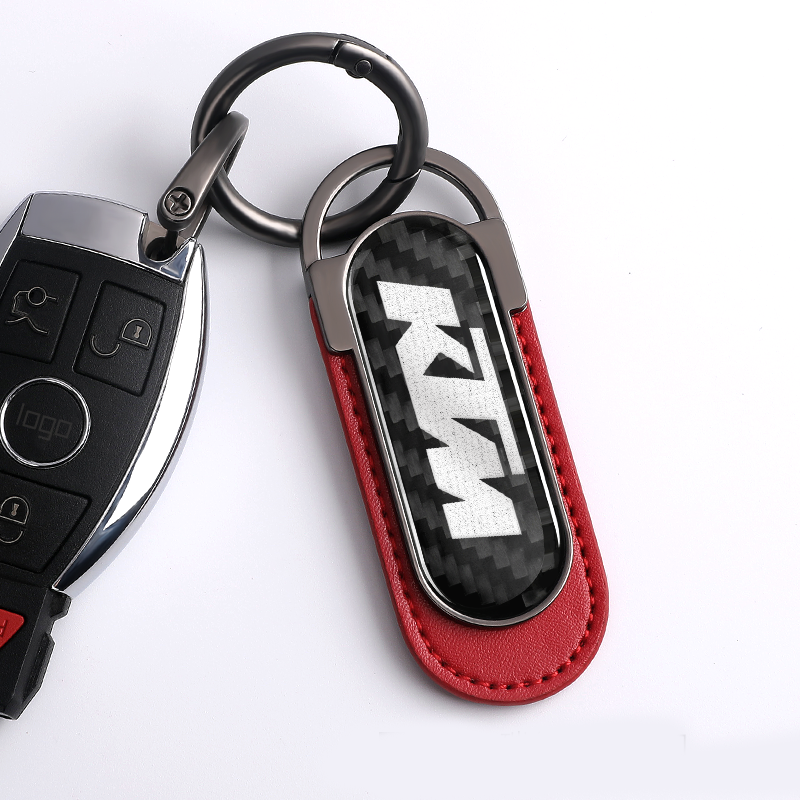 KTM Carbon Fiber Red Leather Metal Keychain